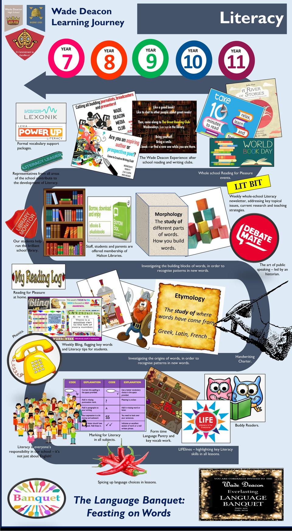 At Wade Deacon, we believe that reading is the gateway to the world around us. From stories to newspapers, blogs to comic books, we believe our students should be immersed in the array of Literature which exists in our world.